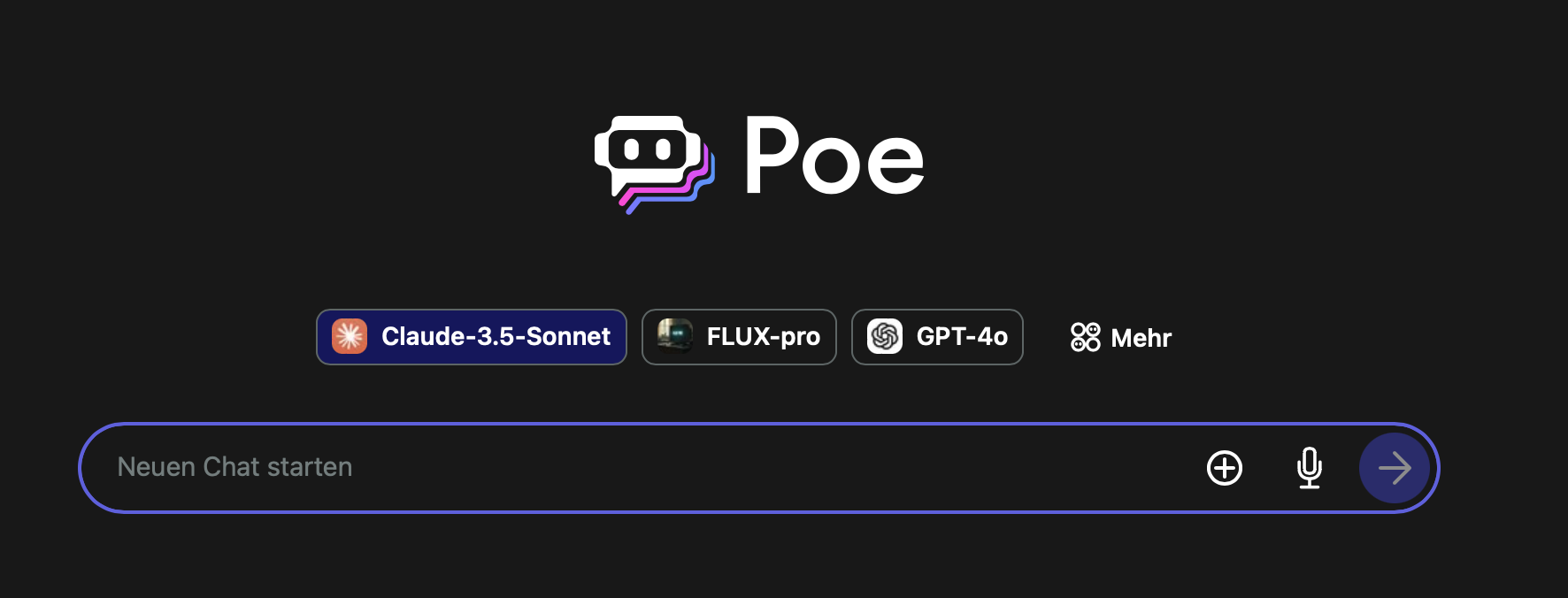 Poe.com ist eine KI-Plattform, die Zugang zu verschiedenen KI-Modellen wie ChatGPT, Claude 3.5 Sonnet, GPT-4o und Googles Gemini 1.5 Pro bietet – alles in einer benutzerfreundlichen Oberfläche.