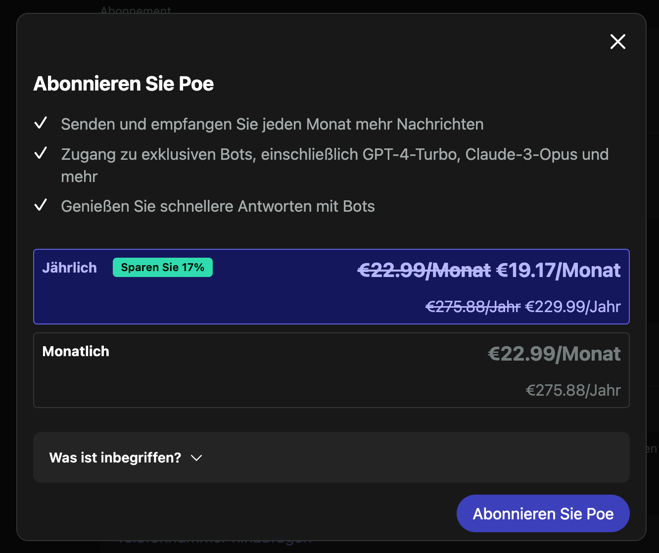 Diese flexible Preisstruktur ermöglicht es Nutzern, Poe entsprechend ihren spezifischen Bedürfnissen und ihrem Budget zu nutzen. Für gelegentliche Nutzer bietet die kostenlose Version bereits viele Möglichkeiten, während das Premium-Abonnement für intensive Nutzer oder Unternehmen mit hohem KI-Bedarf optimale Bedingungen schafft.