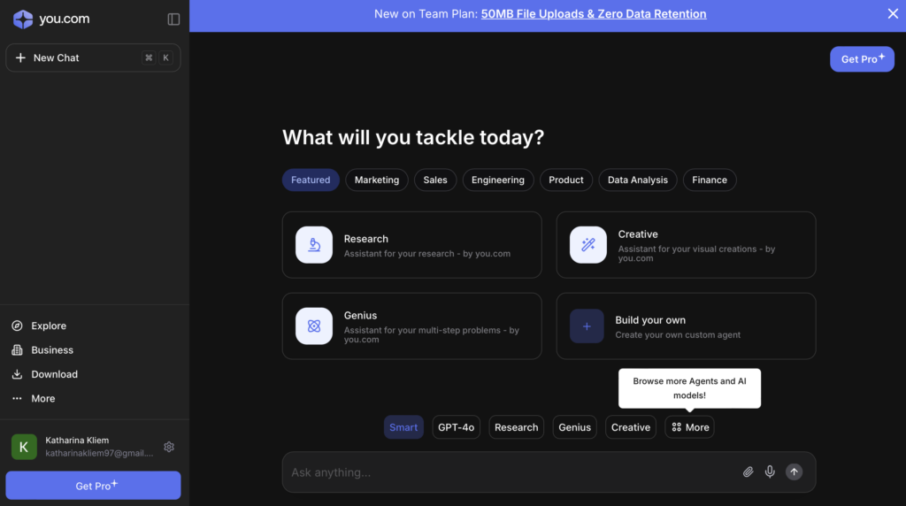 - Für flexible Marketingstrategien: You.com ermöglicht es dir, die Suchergebnisse individuell anzupassen und verschiedene Marketing-Tools direkt zu integrieren.