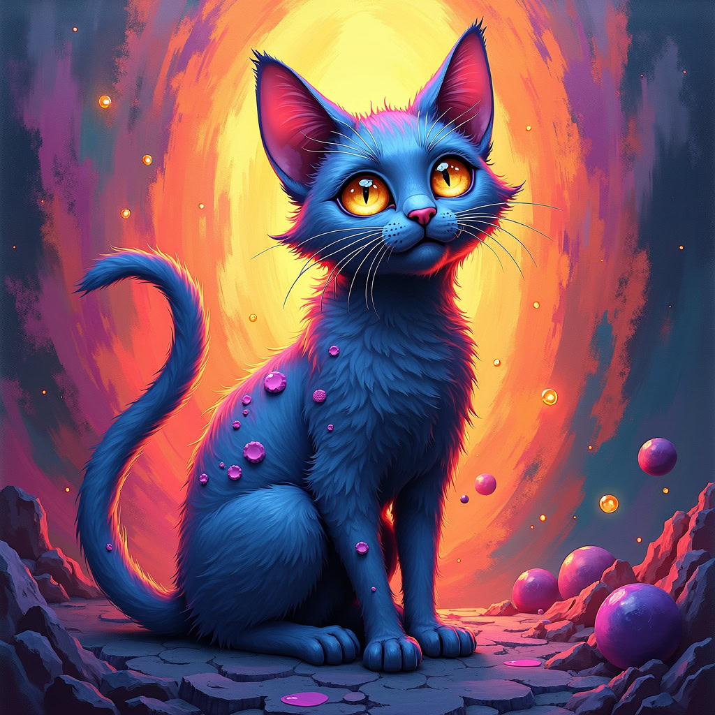 - Stable Diffusion XL: ★★★★☆ (4 Sterne) Gute Balance zwischen realistischen Katzendarstellungen und psychedelischen Elementen. Die Bilder haben eine schöne Ölgemälde-Textur und abstrakte Hintergründe. Einige Darstellungen könnten etwas instabiler oder elusiver sein.