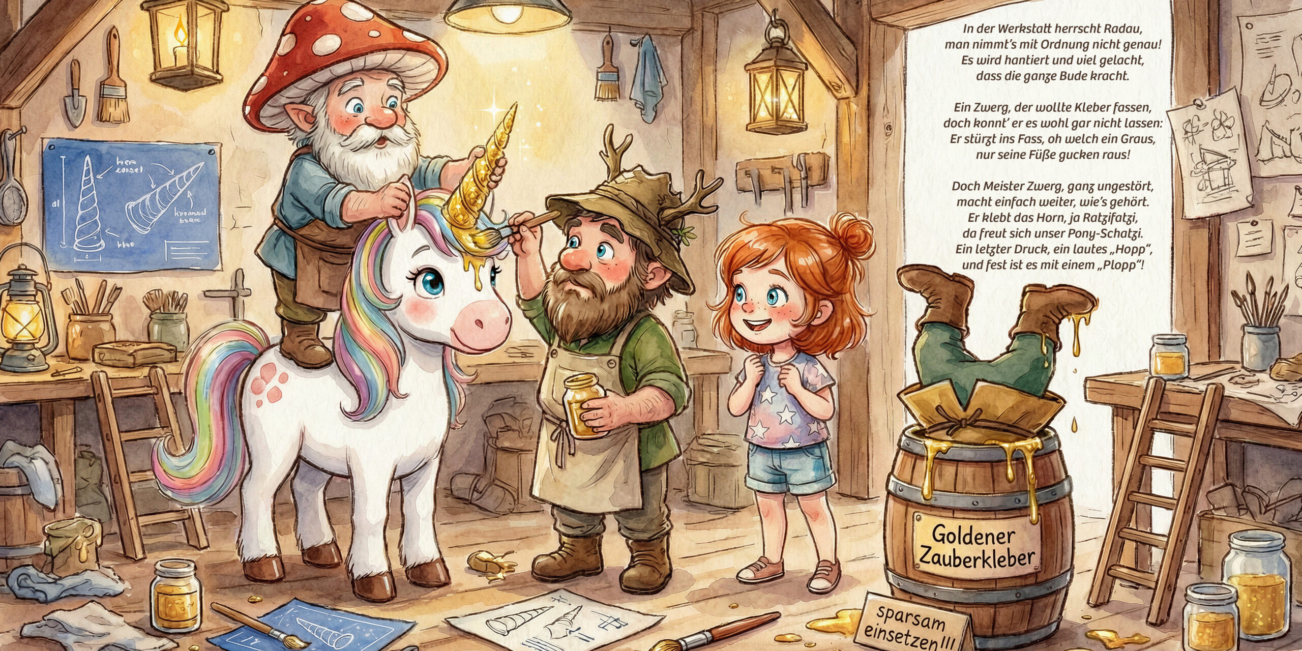 Das diesjährige Buch, „Mathilda und das Keinhorn“, ist nicht nur das schönste bisher, es ist auch das „sauberste“ in der Produktion. Es beweist, dass wir 2026 keine Deep-Tech-Skills mehr brauchen, um konsistente Charaktere zu erzeugen. Wir brauchen „nur“ noch die richtige Strategie, ein gutes Sprachmodell als kreativen Sparringspartner und die richtige Herangehensweise.