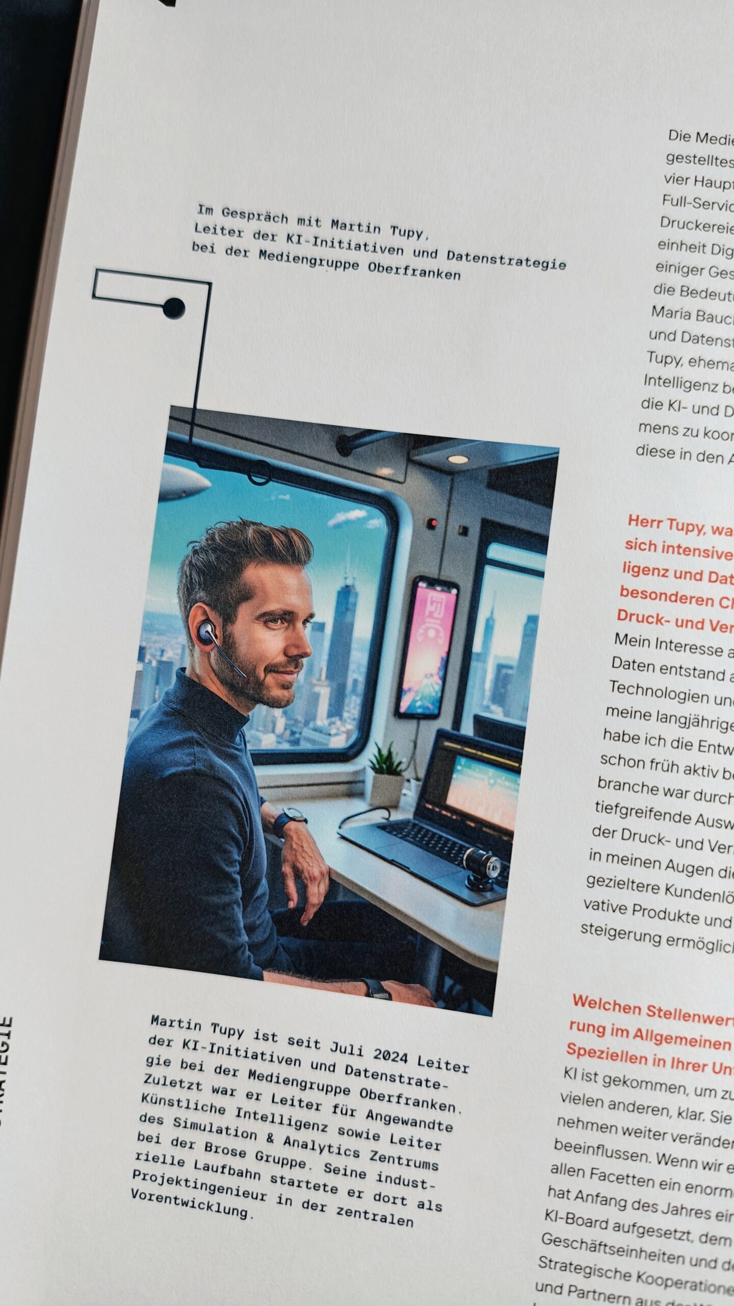 Nach einem intensiven KI-Workshop in der VDMB Akademie entwickelte sich die Idee, diese Technologie direkt in der Praxis einzusetzen. Der Verband Druck und Medien Bayern wollte damit nicht nur über digitale Innovation berichten, sondern sie aktiv demonstrieren – ein Ansatz, der perfekt zur zukunftsorientierten Ausrichtung des Magazins passt.