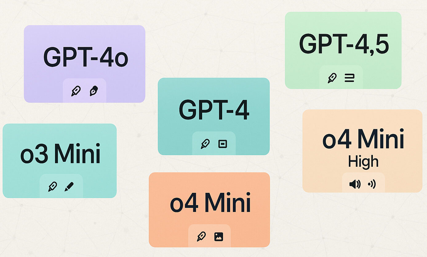 Gefühlt gibt es plötzlich ein halbes Dutzend verschiedene ChatGPT-Modelle – und ständig kommt ein neues dazu. GPT-4, GPT-4o, GPT-4.5, o1, o3 Mini, Mini High, Turbo… Moment mal – was soll das alles eigentlich heißen?