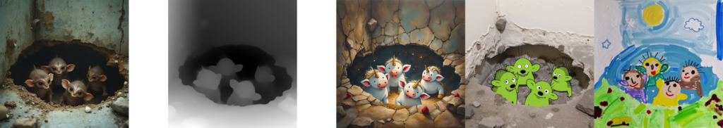 Die beiden Tools Depth und Canny nutzen unterschiedliche Ansätze, um die Struktur von Bildern zu bewahren. Während Depth mit Tiefenkarten arbeitet, setzt Canny auf Kantenerkennung. Beide ermöglichen es, Bilder zu transformieren und dabei die ursprüngliche Komposition beizubehalten – perfekt für kreative Neuinterpretationen.
