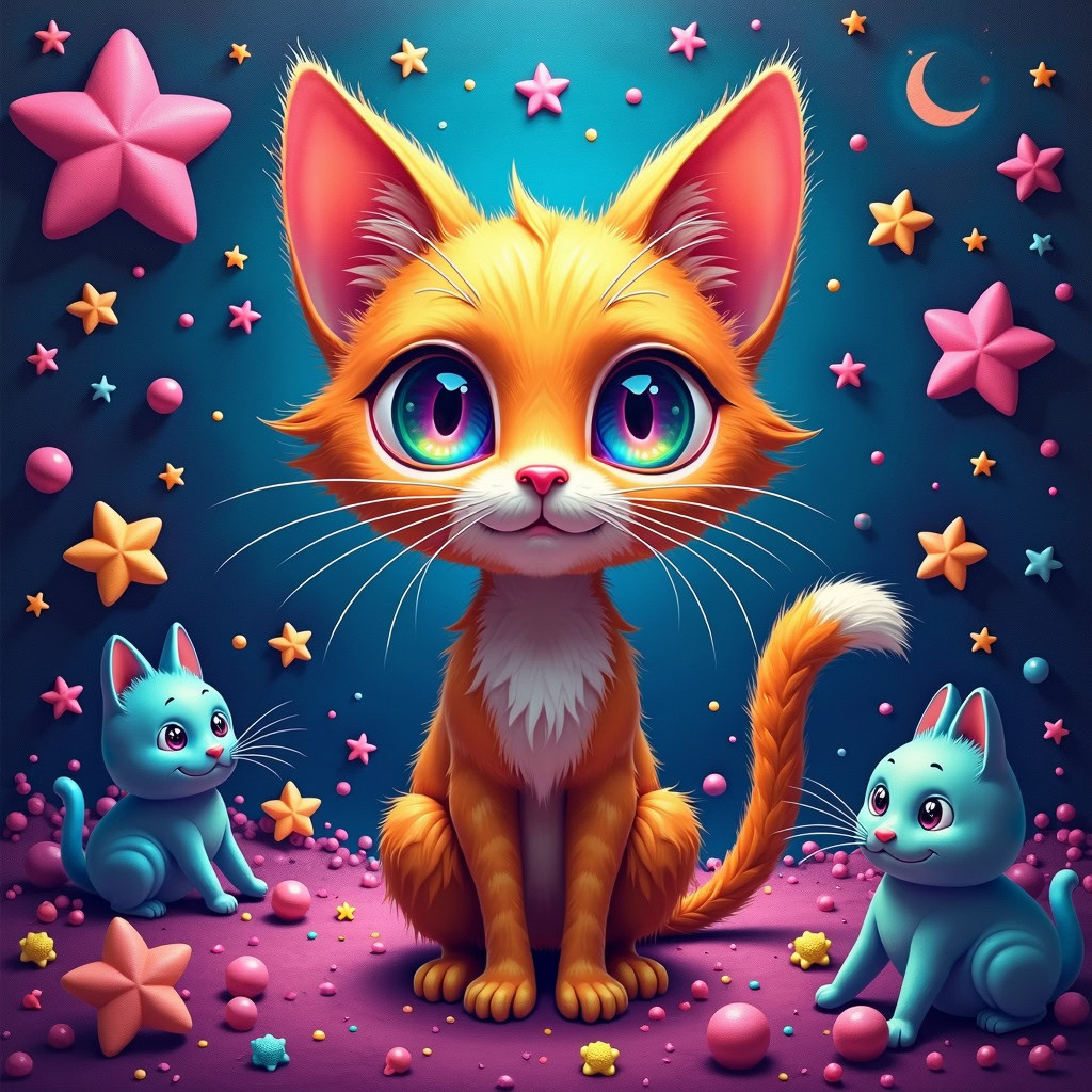 - Stable Diffusion XL: ★★★★☆ (4 Sterne) Gute Balance zwischen realistischen Katzendarstellungen und psychedelischen Elementen. Die Bilder haben eine schöne Ölgemälde-Textur und abstrakte Hintergründe. Einige Darstellungen könnten etwas instabiler oder elusiver sein.