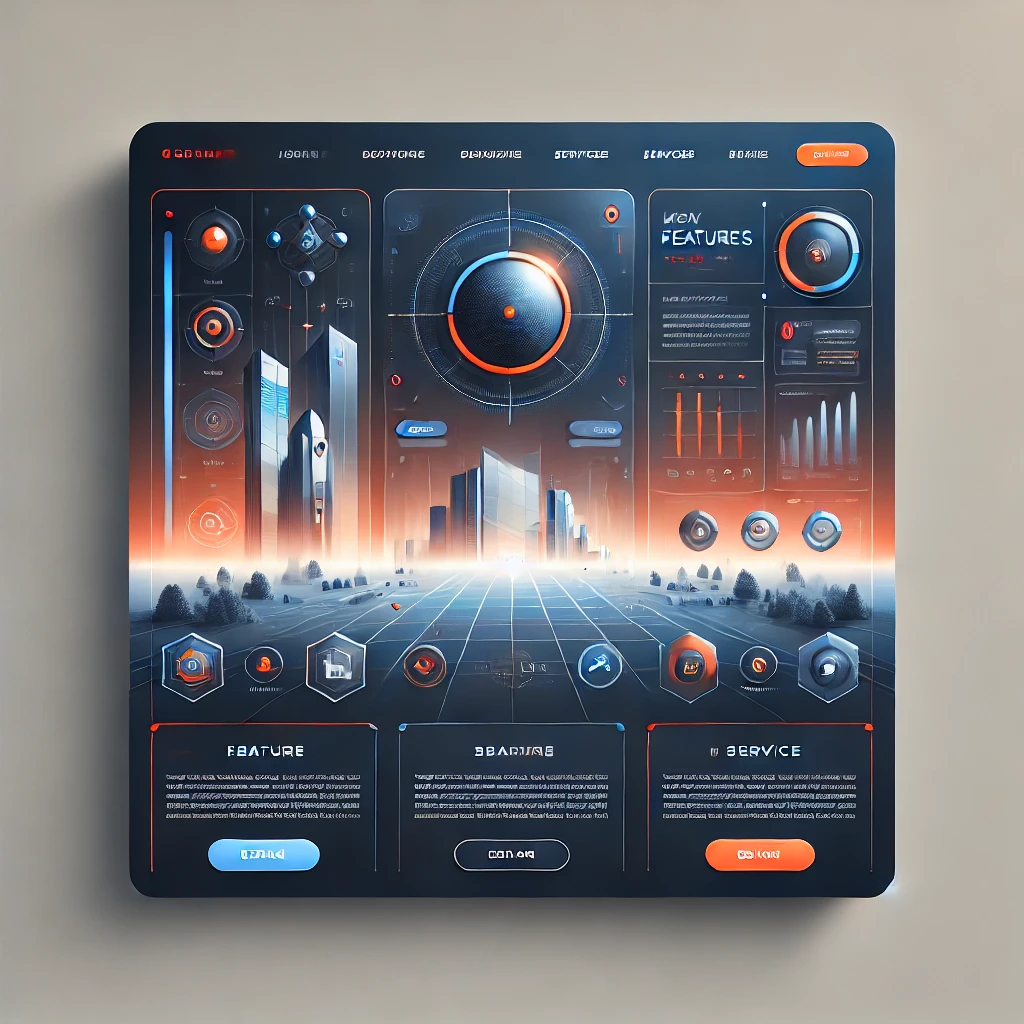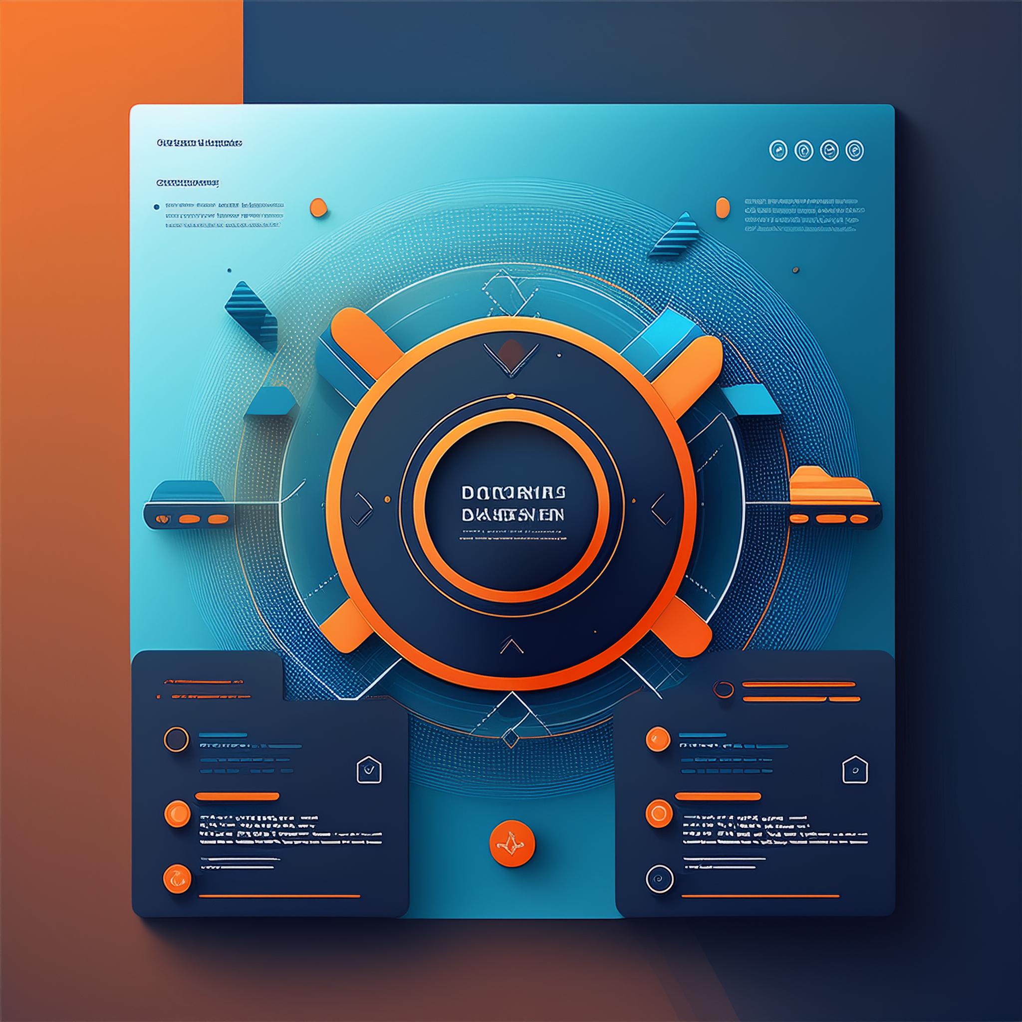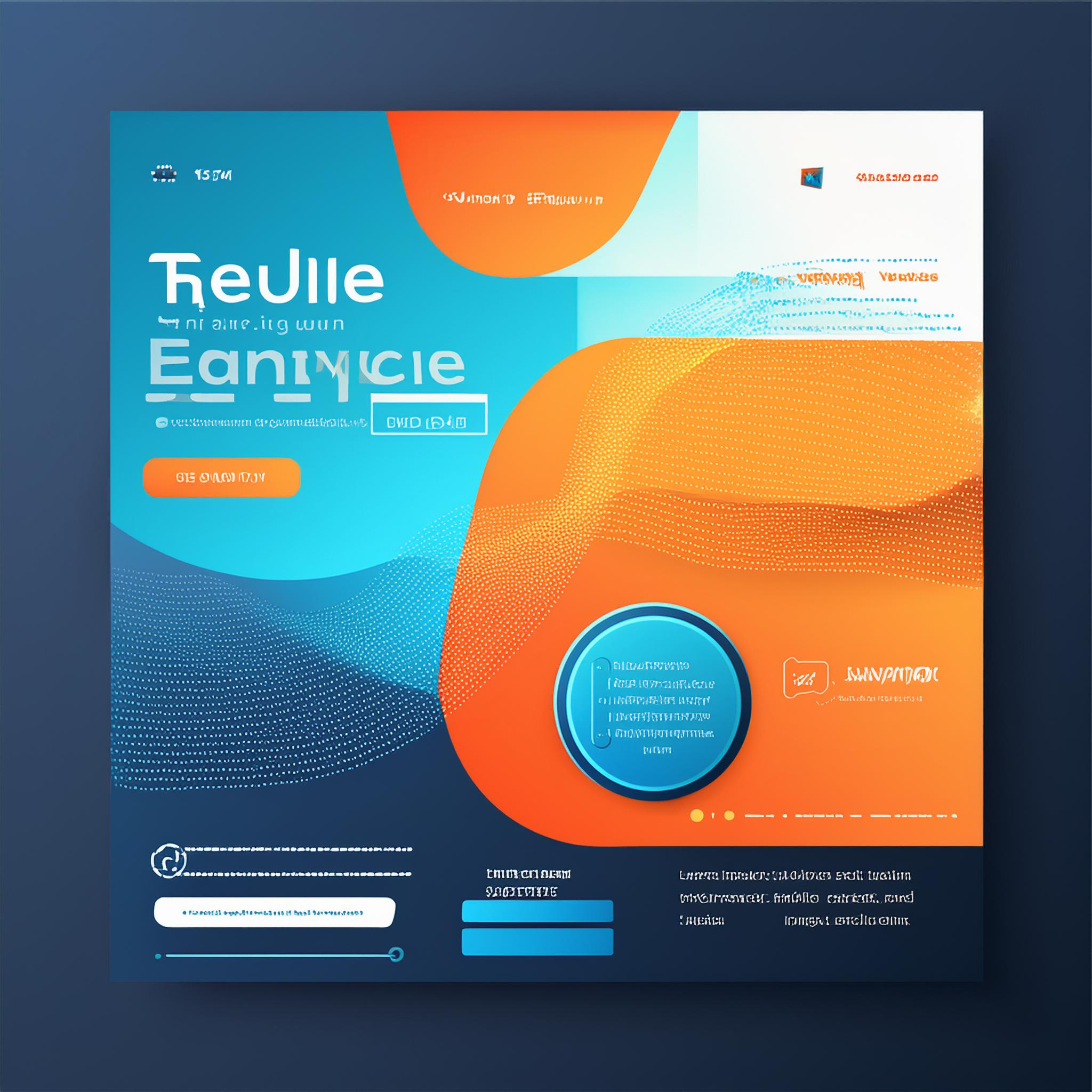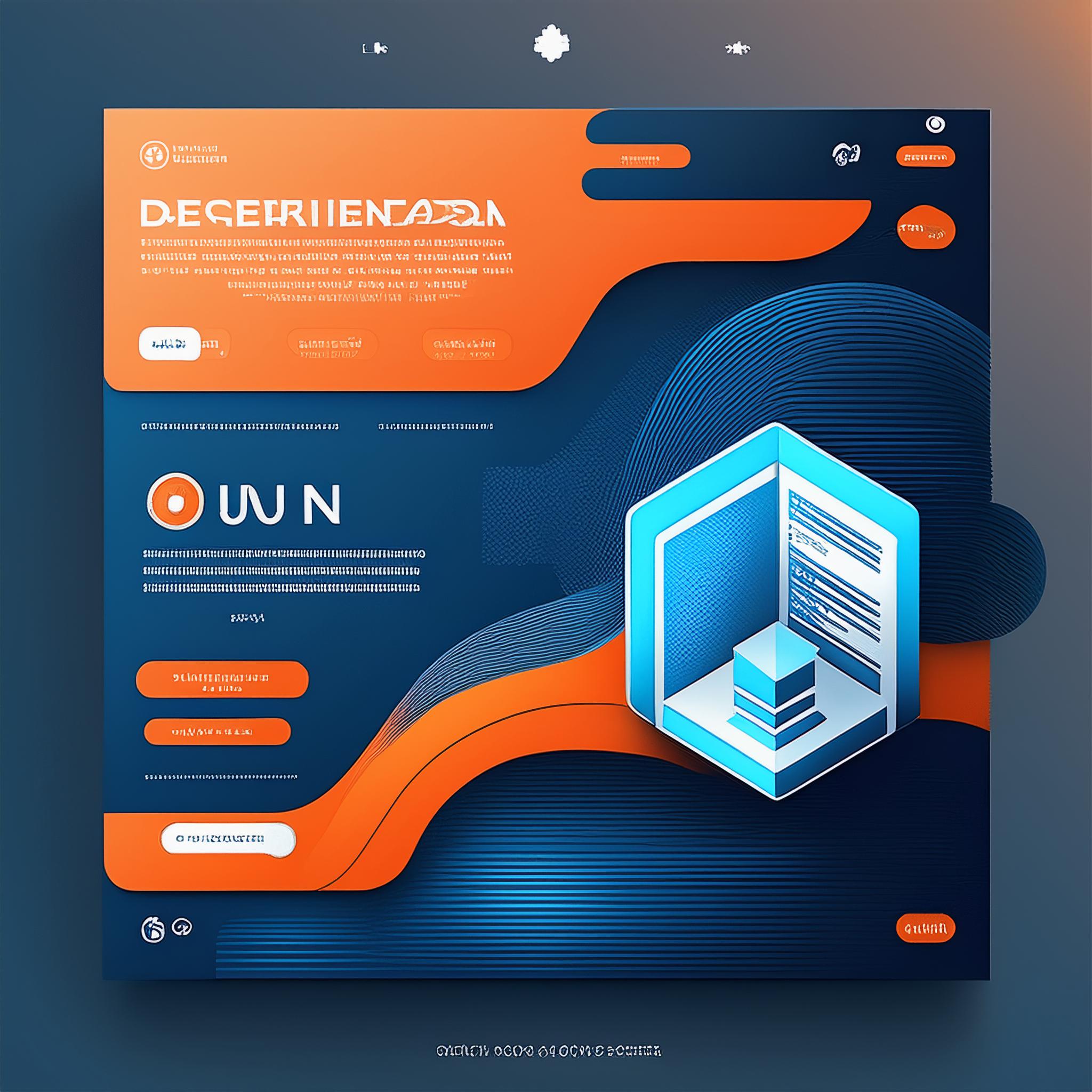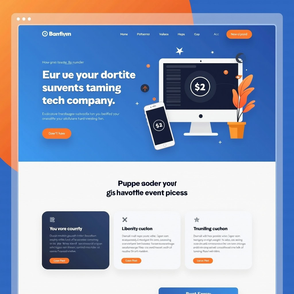 Prompt: a beautiful website landing page for a tech company, modern, minimalistic, blue and orange color scheme, ui, ux, ui/ux