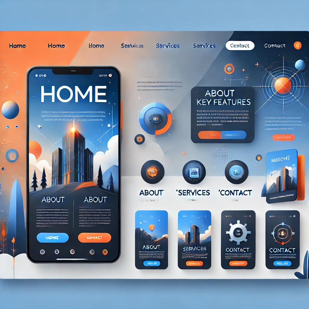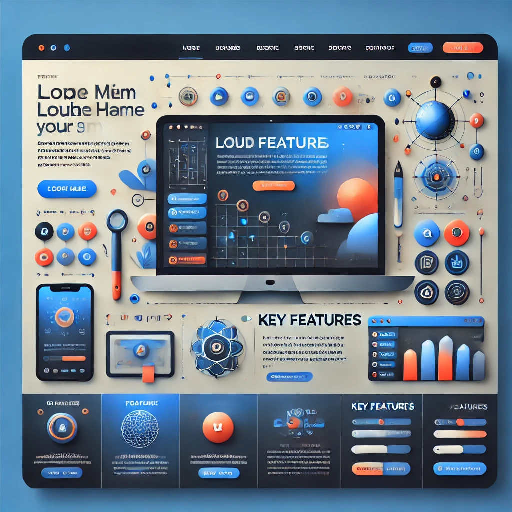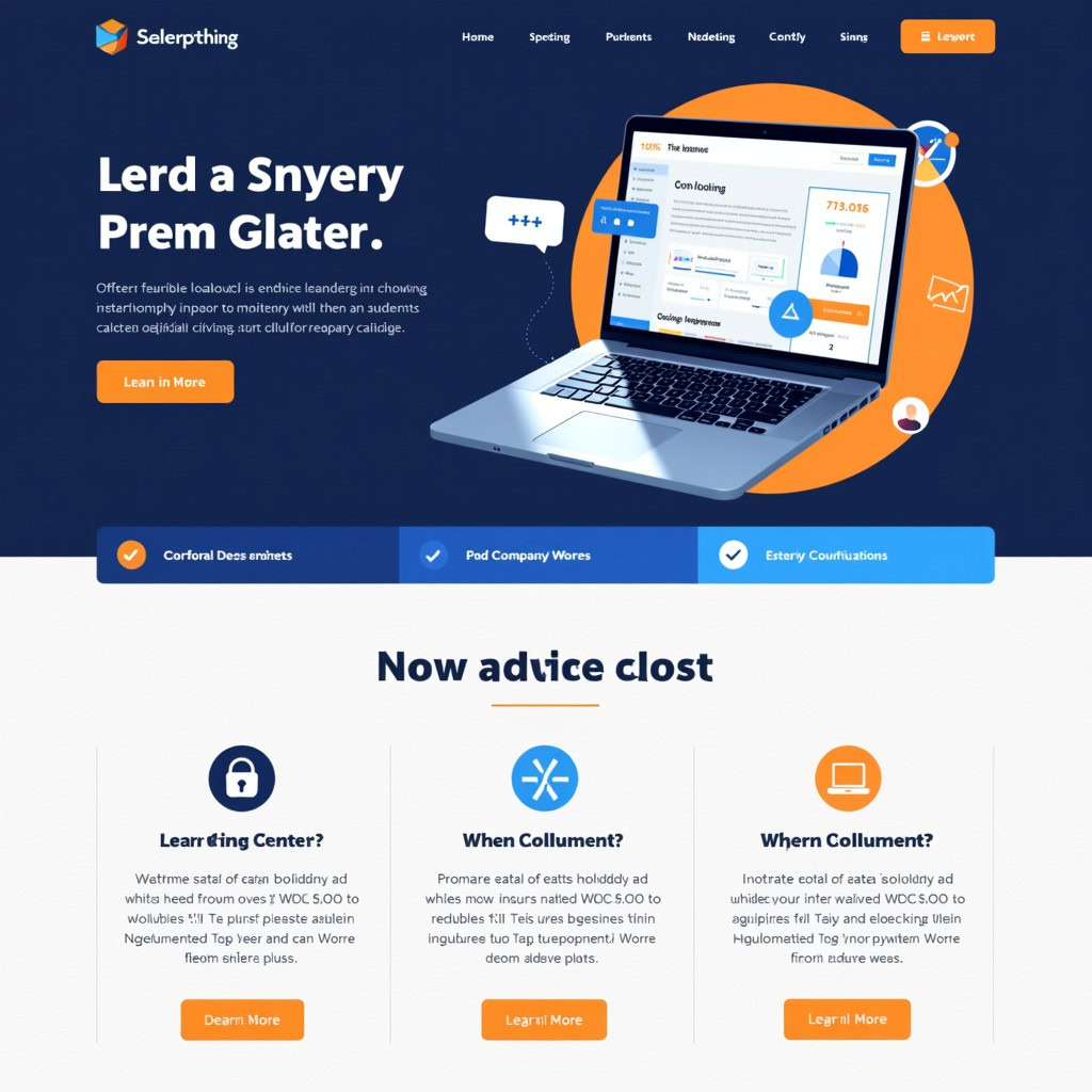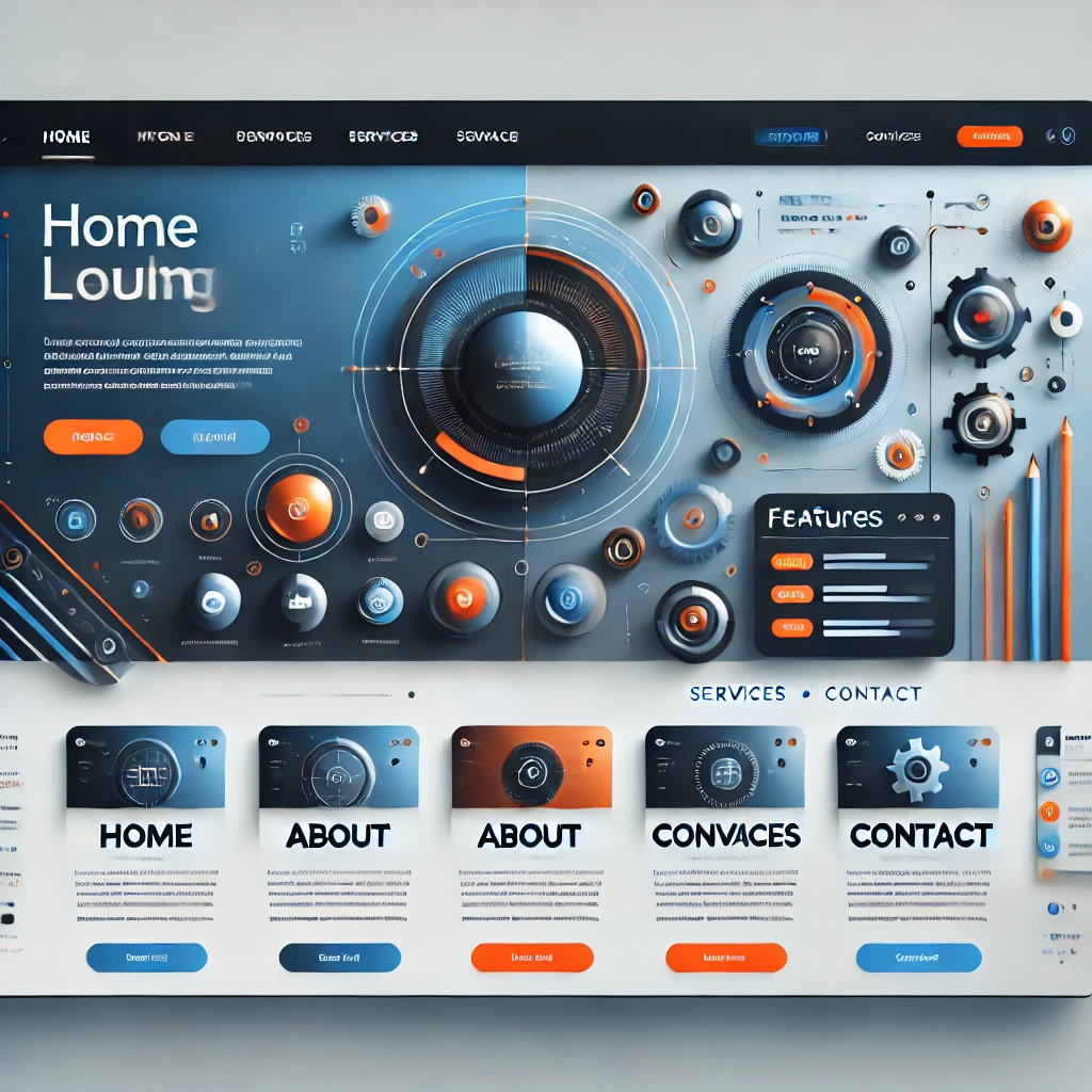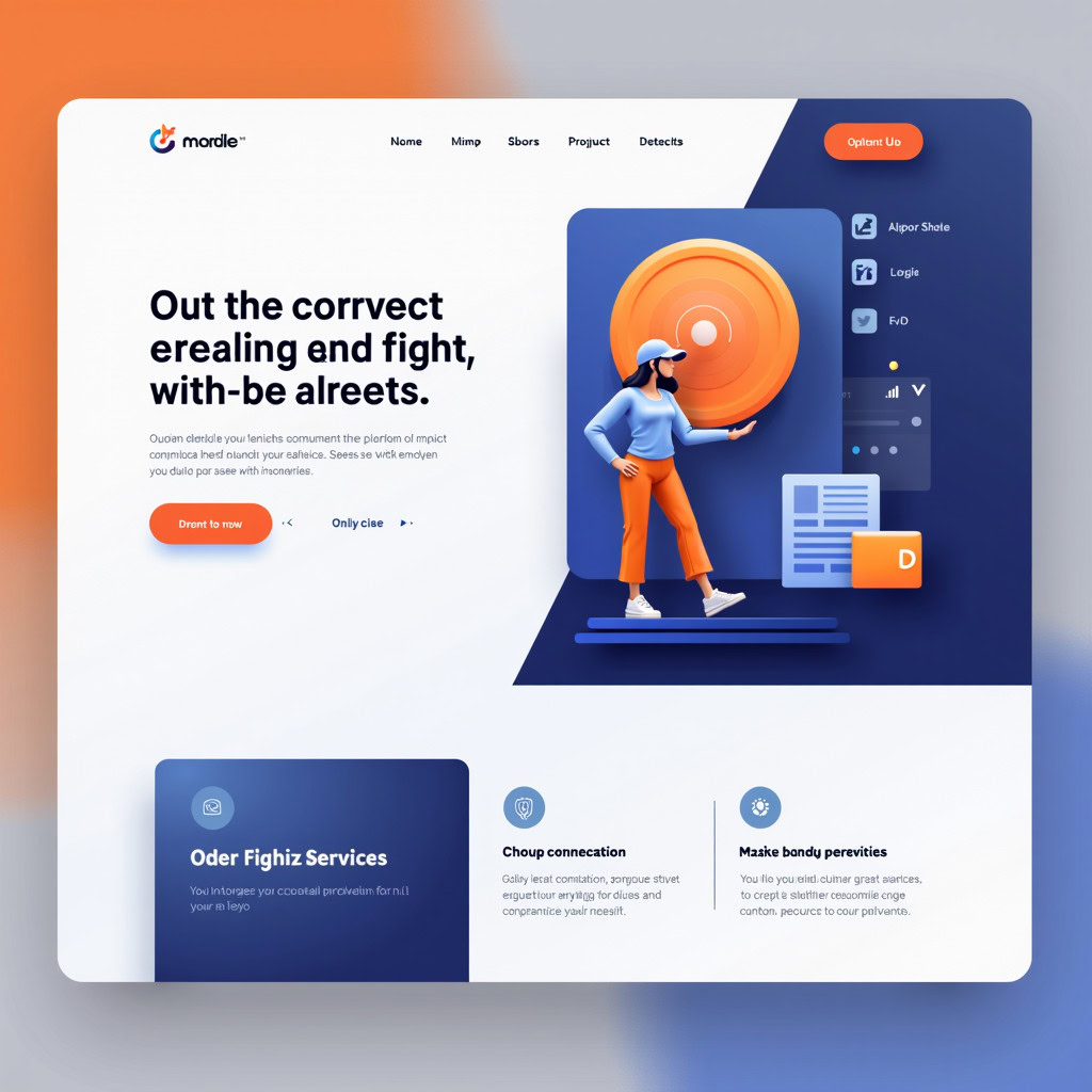 Prompt: a beautiful website landing page for a tech company, modern, minimalistic, blue and orange color scheme, ui, ux, ui/ux