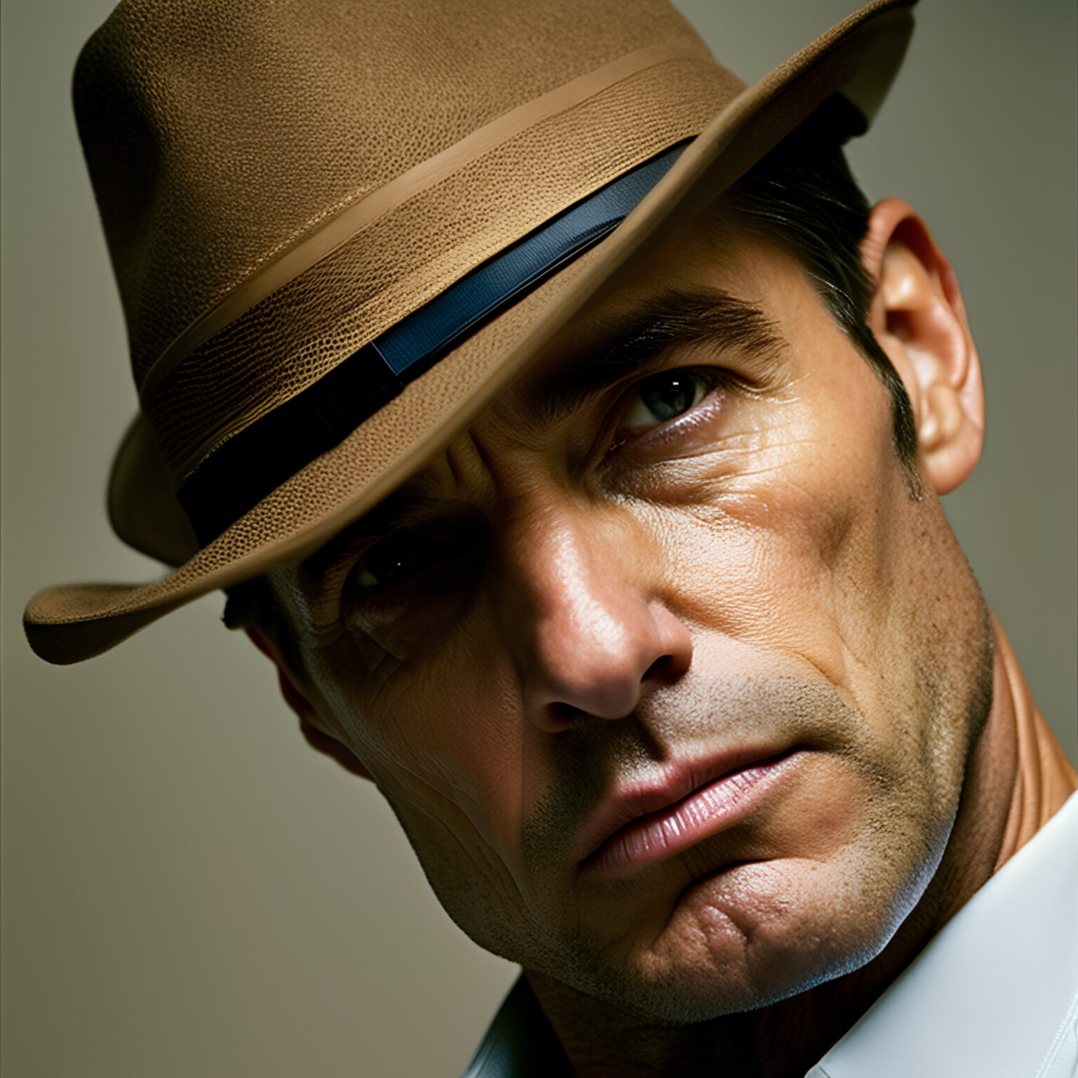 und hier noch der Prompt zum Beitragsbild: stable diffusion 2.1: detective, close up portrait photo by annie leibovitz, film, studio lighting, detailed skin