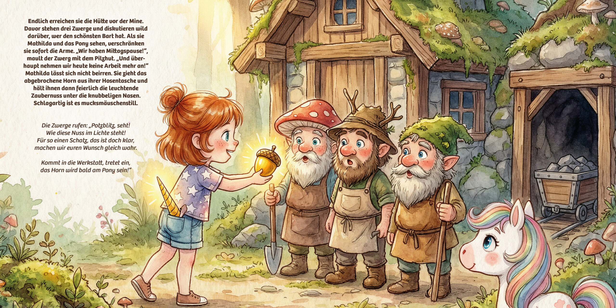 Das diesjährige Buch, „Mathilda und das Keinhorn“, ist nicht nur das schönste bisher, es ist auch das „sauberste“ in der Produktion. Es beweist, dass wir 2026 keine Deep-Tech-Skills mehr brauchen, um konsistente Charaktere zu erzeugen. Wir brauchen „nur“ noch die richtige Strategie, ein gutes Sprachmodell als kreativen Sparringspartner und die richtige Herangehensweise.