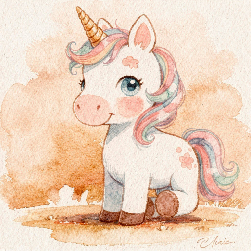 „Soft, whimsical watercolor illustration style with warm pastel tones, delicate and minimal linework, and visible paper texture. Features gentle pigment bleeding, loose transparent brush strokes, and a hand-painted, traditional watercolor appearance. Overall aesthetic is light, charming, and childlike, reminiscent of modern picture-book artwork, with smooth gradients, subtle shading, and an airy, friendly atmosphere.“