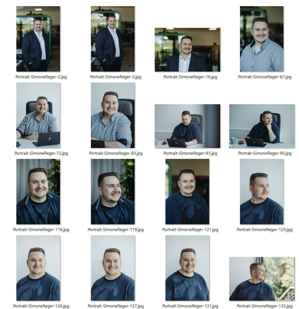 - Finale Auswahl von 4-5 Bildern pro Person