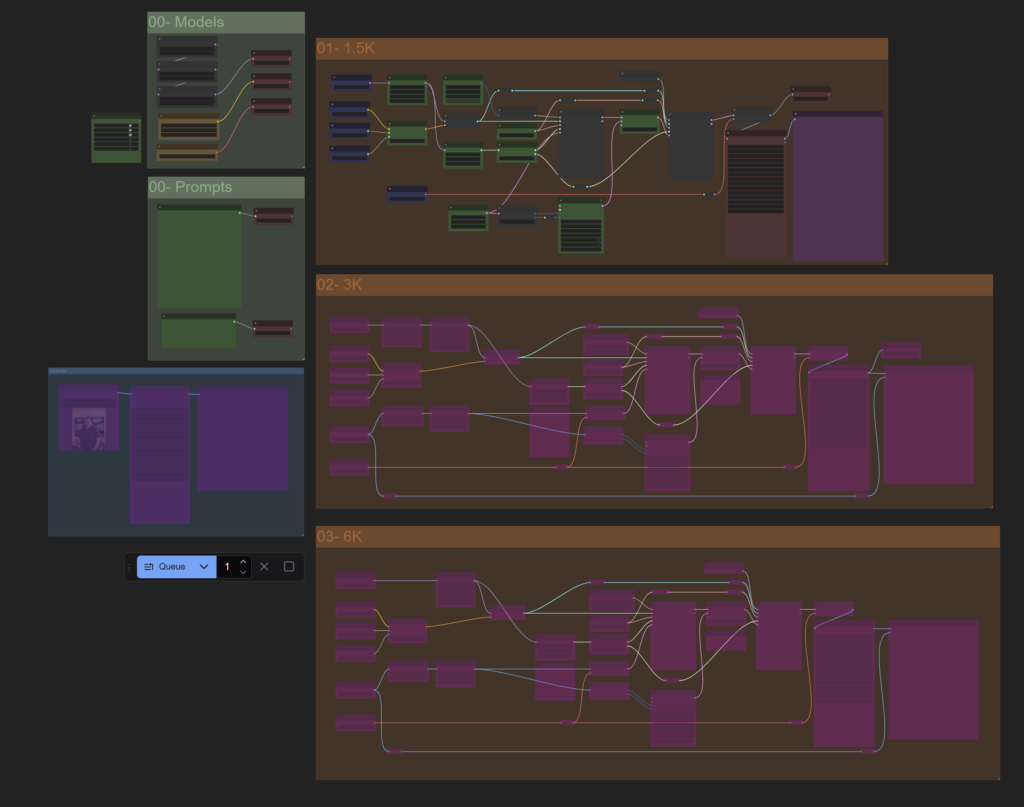 Die eigentliche Bildgenerierung erfolgte über einen spezialisierten ComfyUI-Workflow. ComfyUI, als node-basierte Oberfläche für Bildgenerierung, ermöglichte uns dabei eine präzise Kontrolle über jeden einzelnen Parameter des Generierungsprozesses.