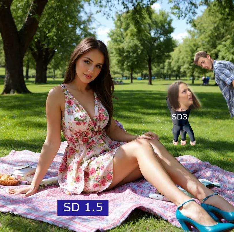 Leider hat sich schnell herausgestellt, dass SD3 Medium in seiner jetzigen Form praktisch unbrauchbar ist. Der Versuch, das Modell durch strengere Zensur und das Blockieren von Teilen der menschlichen Anatomie „sicherer“ zu machen, hat zu gravierenden Einschränkungen geführt. Insbesondere die Darstellung weiblicher Körper scheint stark beeinträchtigt zu sein, wie zahlreiche Tests und Memes in der Community belegen.