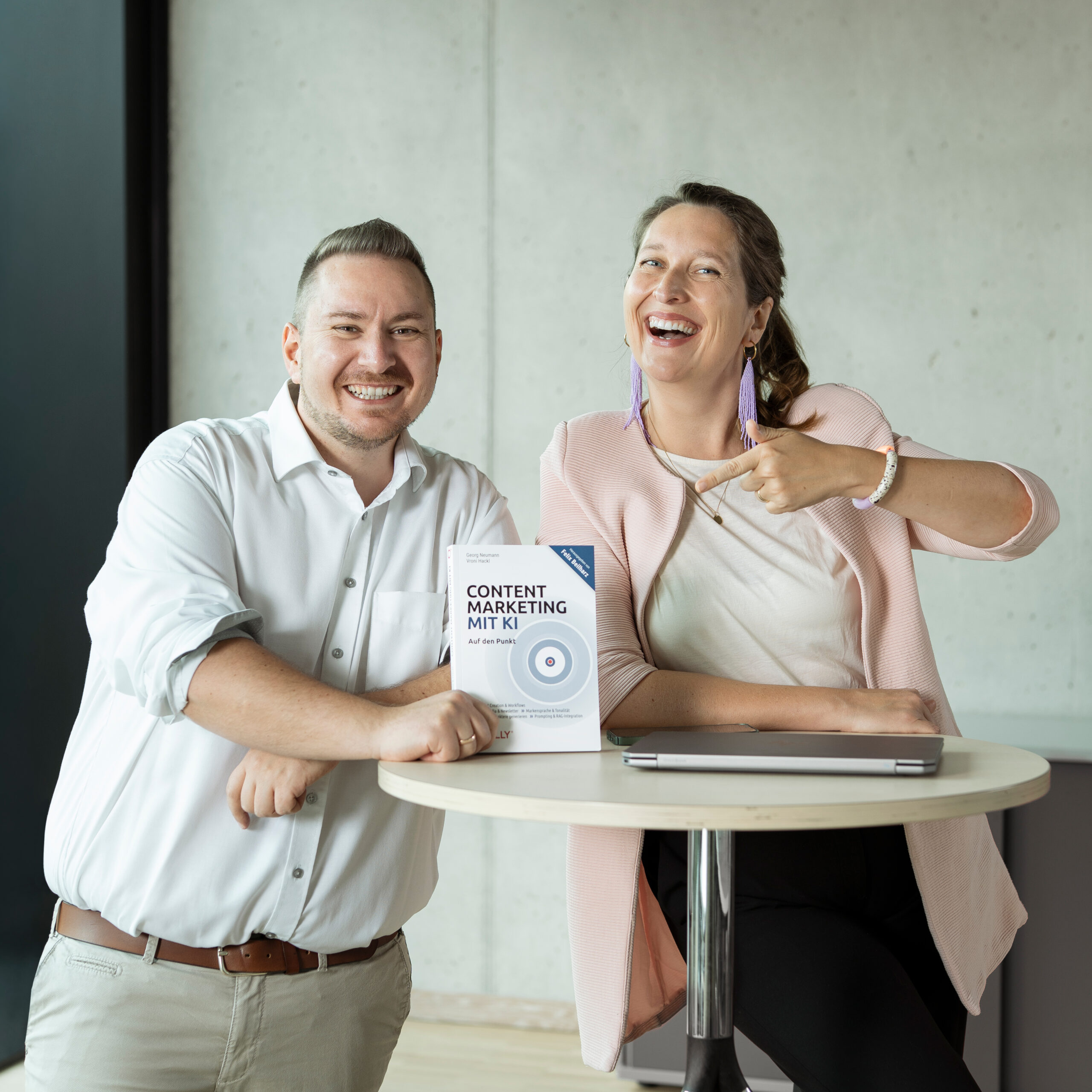 Wir sind Vroni Hackl und Georg Neumann. KI-Enthusiasten durch und durch und das schon länger, als es ChatGPT gibt.